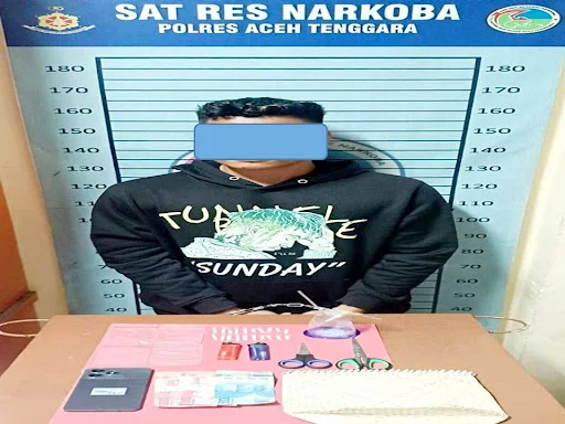 Kapolres Aceh Tenggara, AKBP R. Doni Sumarsono, S.I.K., M.H., melalui Plt Kasi Humas Ipda Patar Erwinsyah, S.H., mengatakan bahwa dari penangkapan tersangka pengedar narkotika jenis sabu, diamankan 20 bungkus sabu yang masing-masing terbungkus plastik warna putih bening dengan berat brutto 2,28 gram, 1 buah alat hisap sabu/bong, 4 bungkus plastik klip warna putih bening, 2 buah mancis, 2 buah gunting, 1 buah tas beras warna coklat, uang sejumlah Rp. 250.000, dan 1 unit handphone merek Realme. Pungkas Plt Kasi Humas.