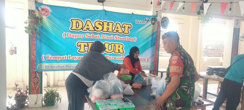 Surakarta - Sebagai wujud kepedulian terhadap kesehatan gizi khususnya Ibu hamil dan Anak dan percepatan penurunan stunting, Babinsa Kelurahan Purwodiningratan Koramil 04/Jebres kodim 0735/Surakarta Serka Suparno melaksanakan pendampingan Program DASHAT (Dapur Sehat Atasi Stunting) di kedai Ibu Indra sebagai penyedia makanan bertempat di pasar Ledoksari kelurahan Purwodiningratan Jebres, Sabtu (31/08/2024)