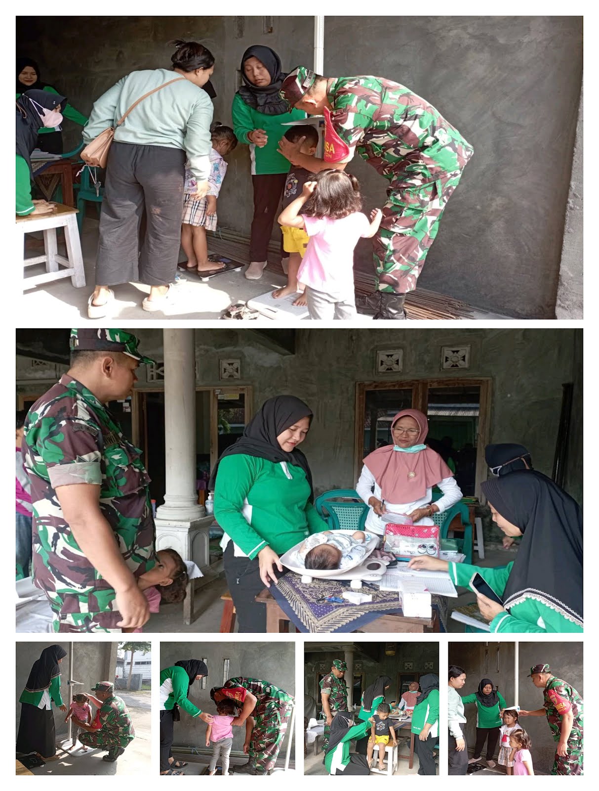 Dalam kegiatan tersebut Babinsa membantu petugas kesehatan (Bidan Desa) dan Kader Posyandu dalam berbagai pelayanan, seperti penimbangan bayi, pengukuran tinggi badan, pemberian vitamin, serta edukasi gizi bagi ibu hamil dan balita. Selain itu, warga juga diberikan pemahaman mengenai pentingnya pola asuh yang baik serta asupan gizi seimbang untuk mencegah stunting sejak dini.